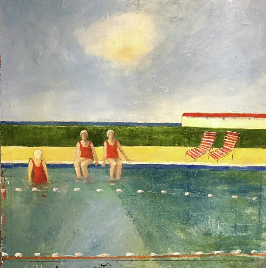 The lure of a swimming pool is strong to this day. I started swimming when I was very young and immediately loved it! I was a racer, a lifeguard, an instructor. I love the sounds, the colors, and even the smell of the water . .